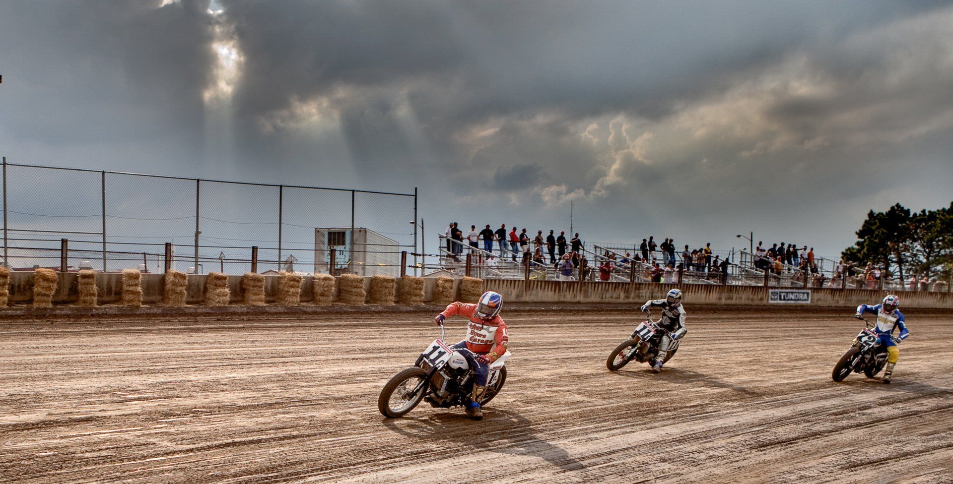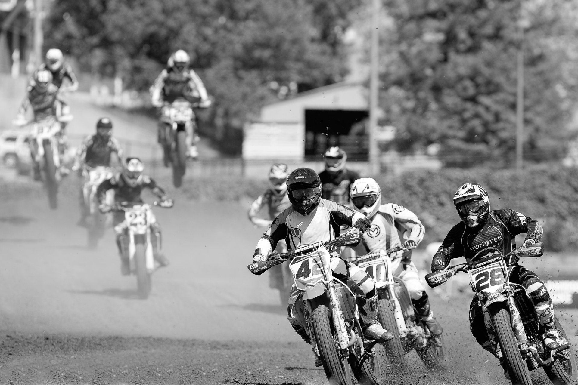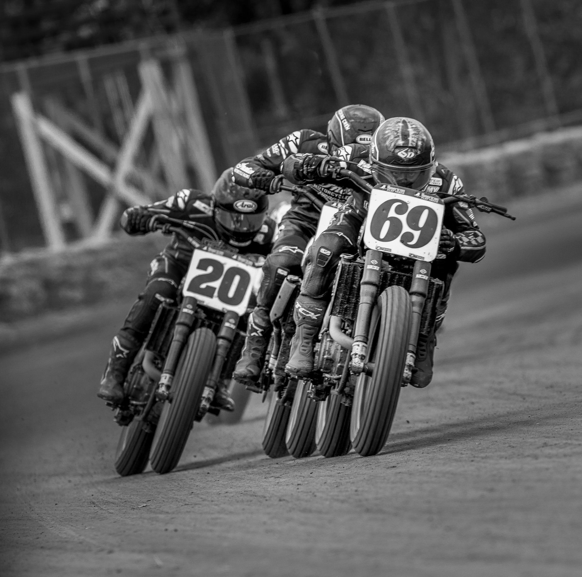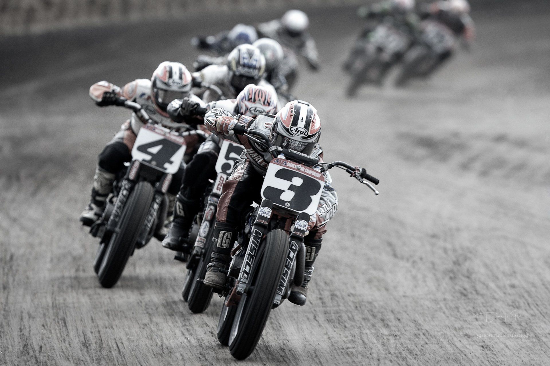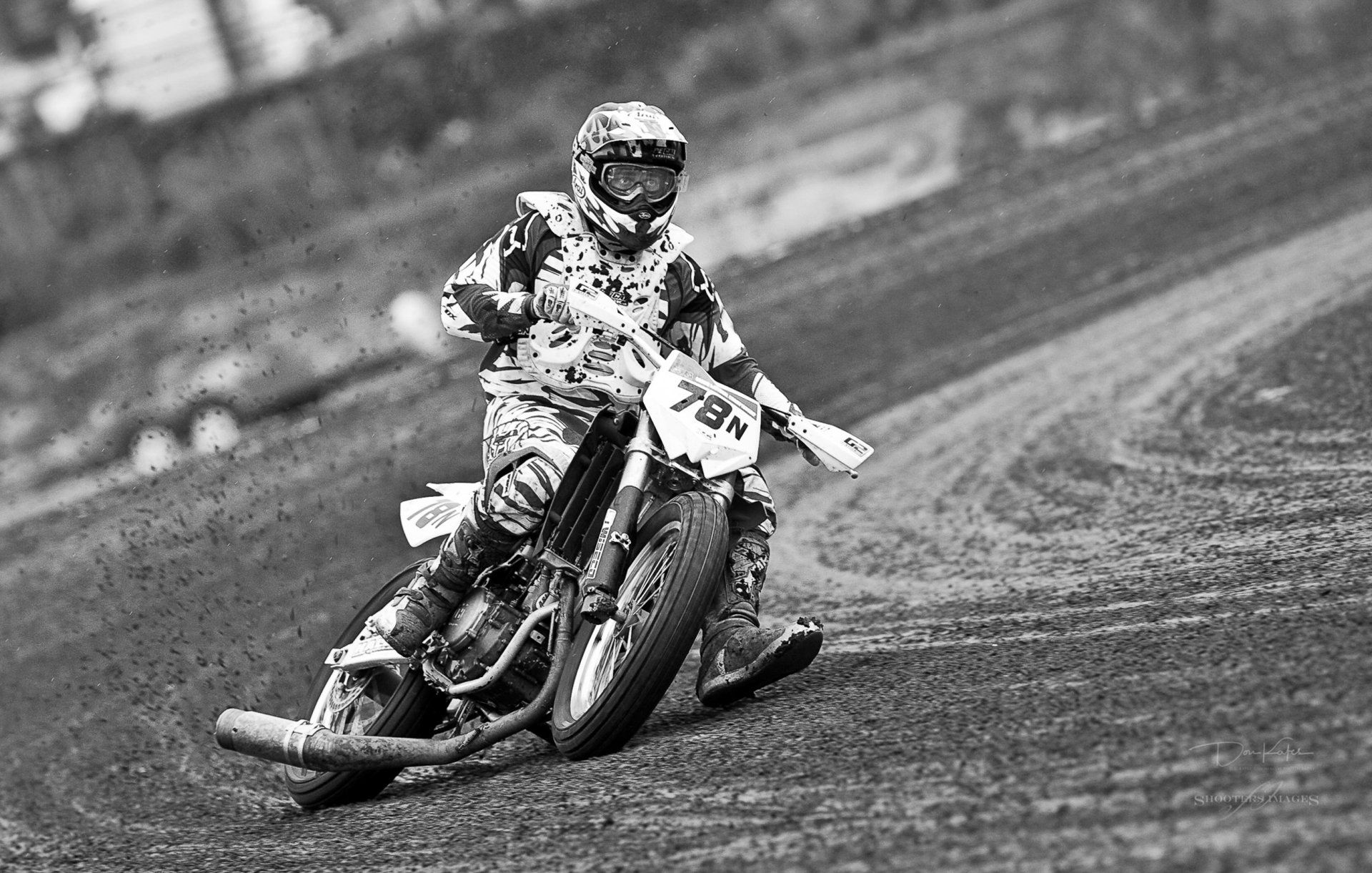 Most of my experience shooting races has been with flat track racing, but I occasionally shoot motocross, drag races, and snowmobiles. Much like rodeo photography, I'm kind of an "outsider" in that I don't follow a circuit and post images for sale to participants. I shot the Springfield Mile twice a year for over 7 years for Toyota. I originally shot the Mile for an article for Harley-Davidson's HOG Magazine. So, my focus has always been to document the event rather than get individual shots that I could sell. This allowed me to experiment a bit with different angles, shooting techniques, less popular track positions, and so on. Among a sea of conventional 70-200mm lenses, I mostly shot with 400mm and 600mm lenses which gave an entirely different look than the "accepted" lenses. I also shot with extreme wide angle lenses, which produced some of my favorite images. Shooting riders at 100+mph which such long lenses also proved to be an enjoyable challenge.