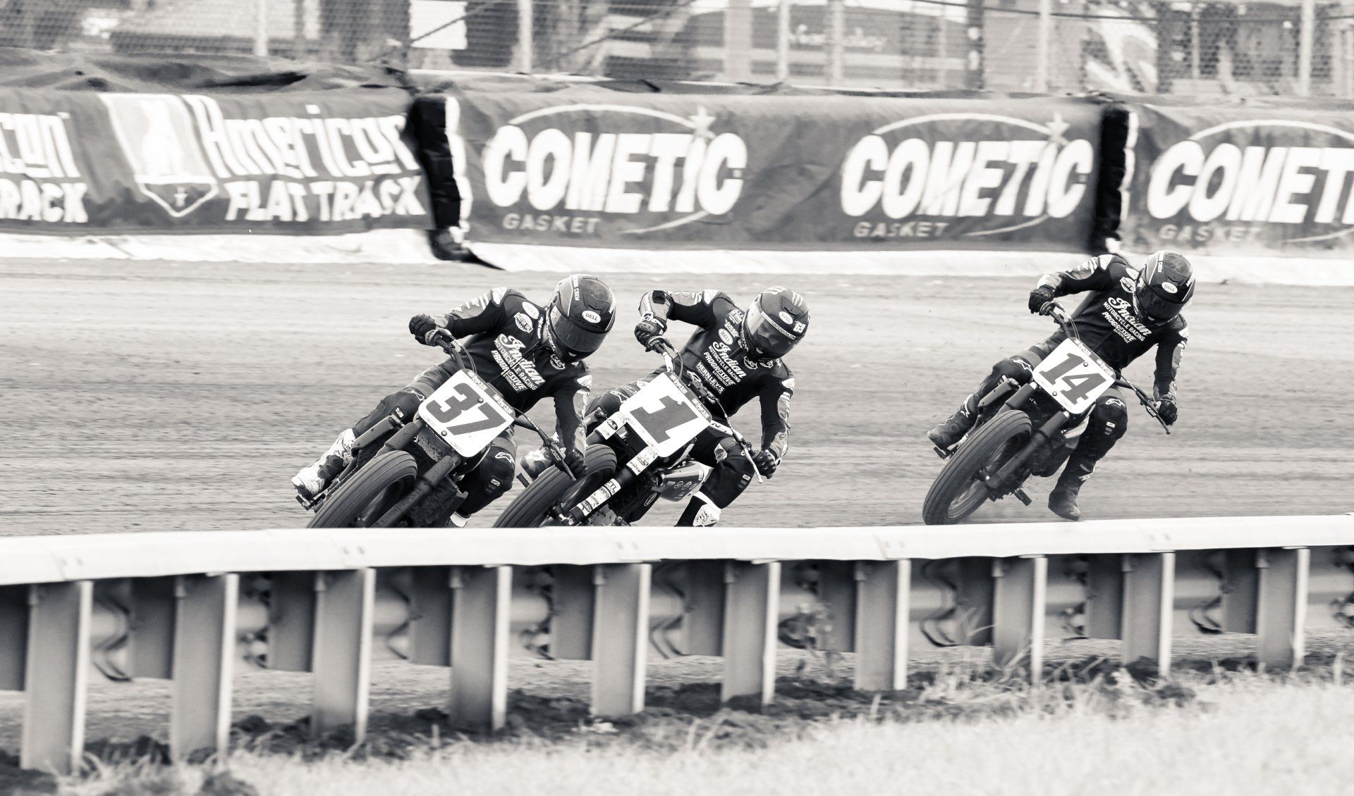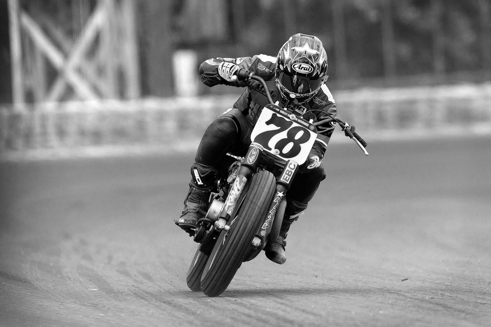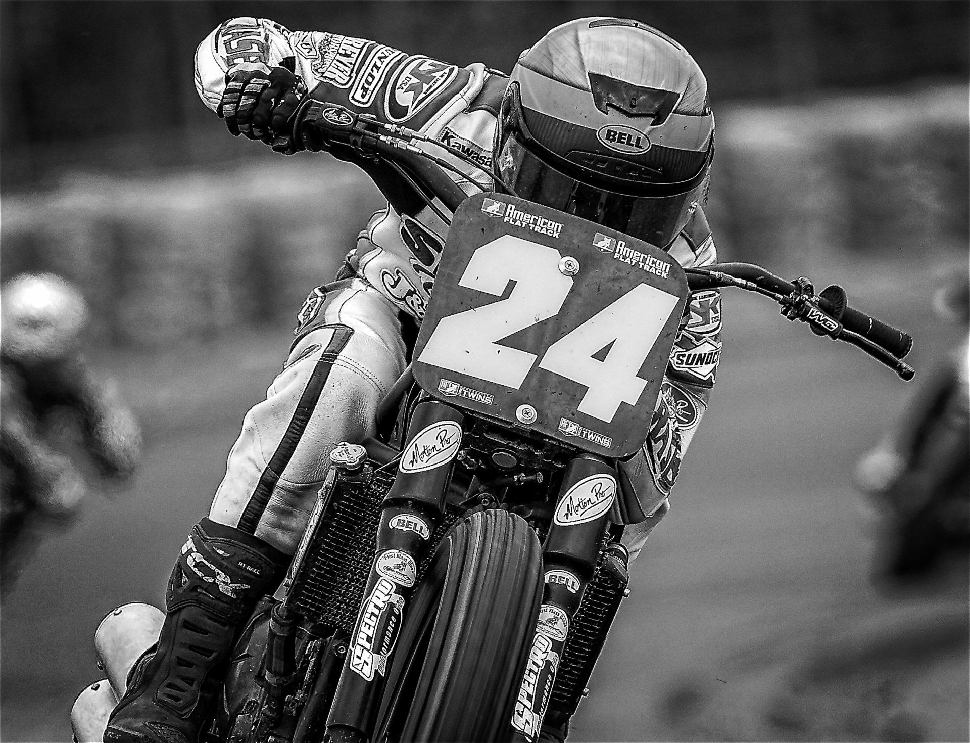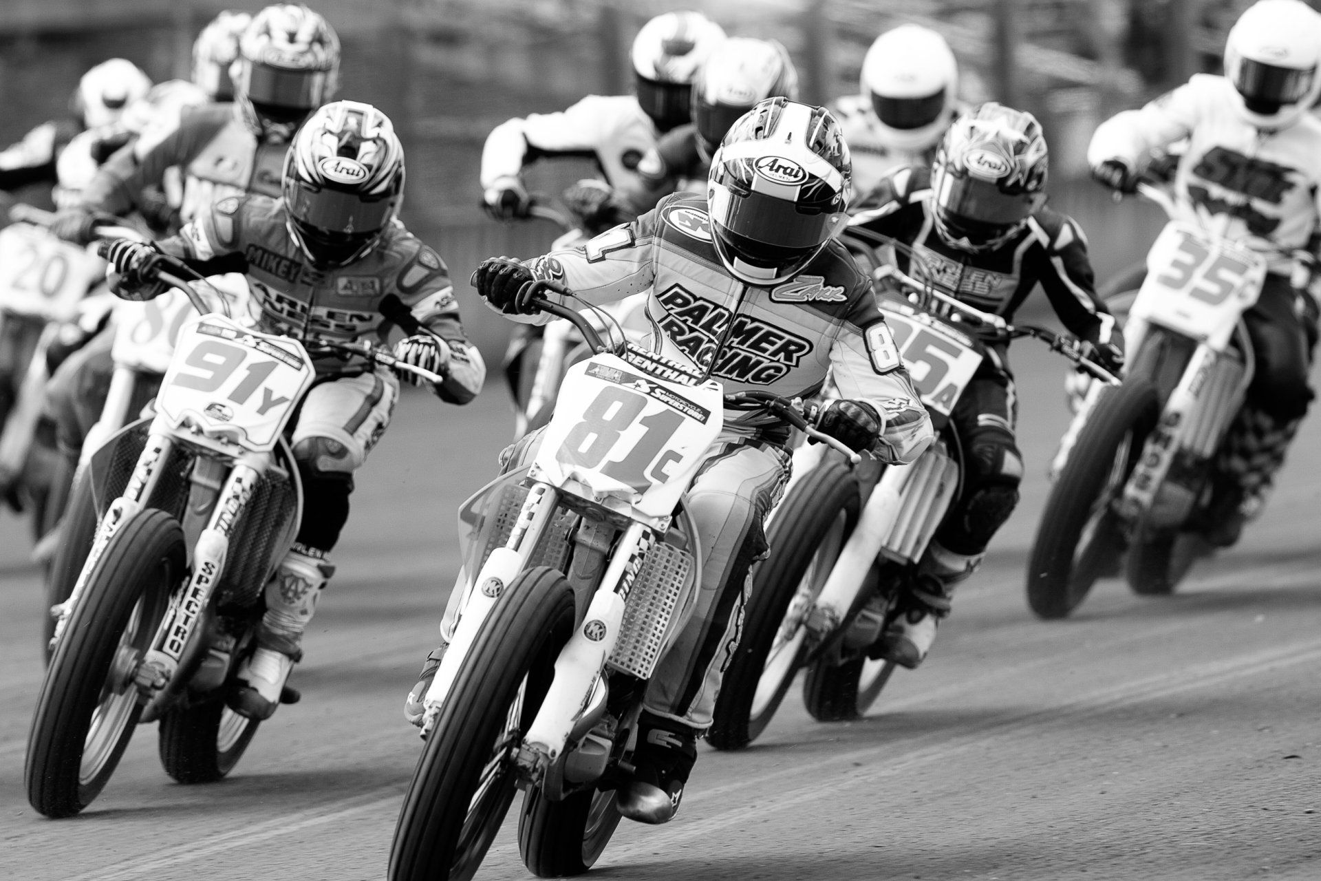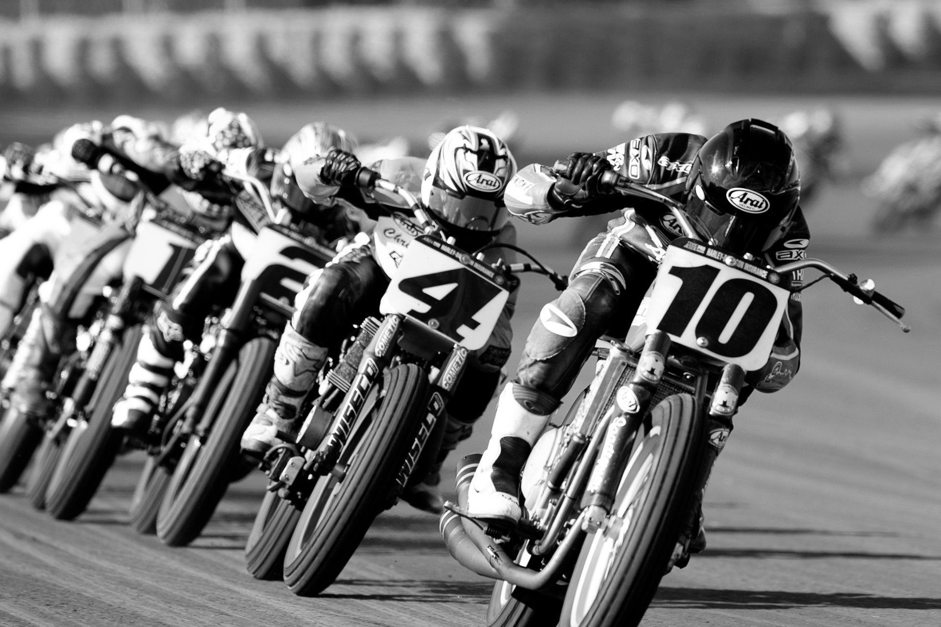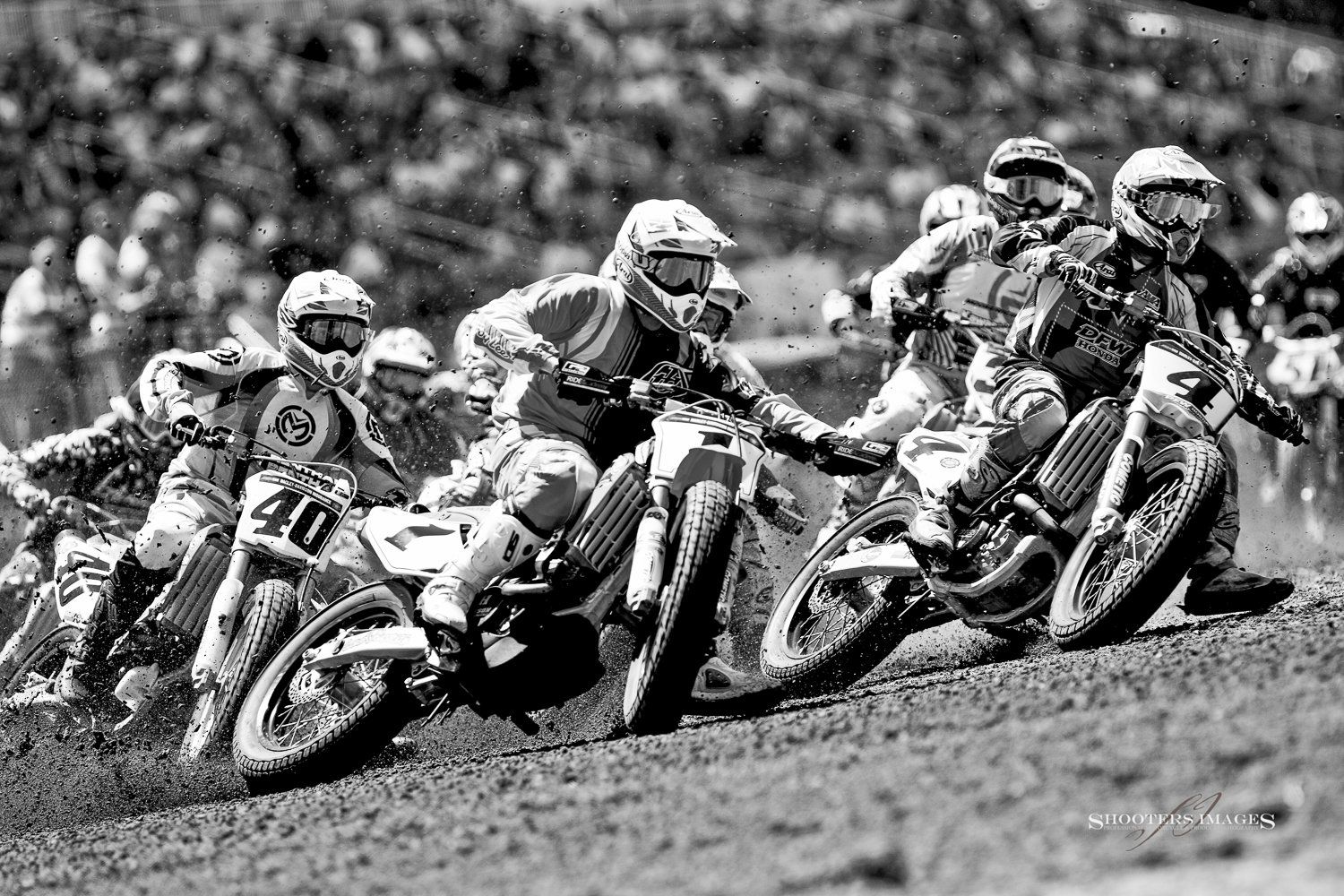 Most of my experience shooting races has been with flat track racing, but I occasionally shoot motocross, drag races, and snowmobiles. Much like rodeo photography, I'm kind of an "outsider" in that I don't follow a circuit and post images for sale to participants. I shot the Springfield Mile twice a year for over 7 years for Toyota. I originally shot the Mile for an article for Harley-Davidson's HOG Magazine. So, my focus has always been to document the event rather than get individual shots that I could sell. This allowed me to experiment a bit with different angles, shooting techniques, less popular track positions, and so on. Among a sea of conventional 70-200mm lenses, I mostly shot with 400mm and 600mm lenses which gave an entirely different look than the "accepted" lenses. I also shot with extreme wide angle lenses, which produced some of my favorite images. Shooting riders at 100+mph which such long lenses also proved to be an enjoyable challenge.