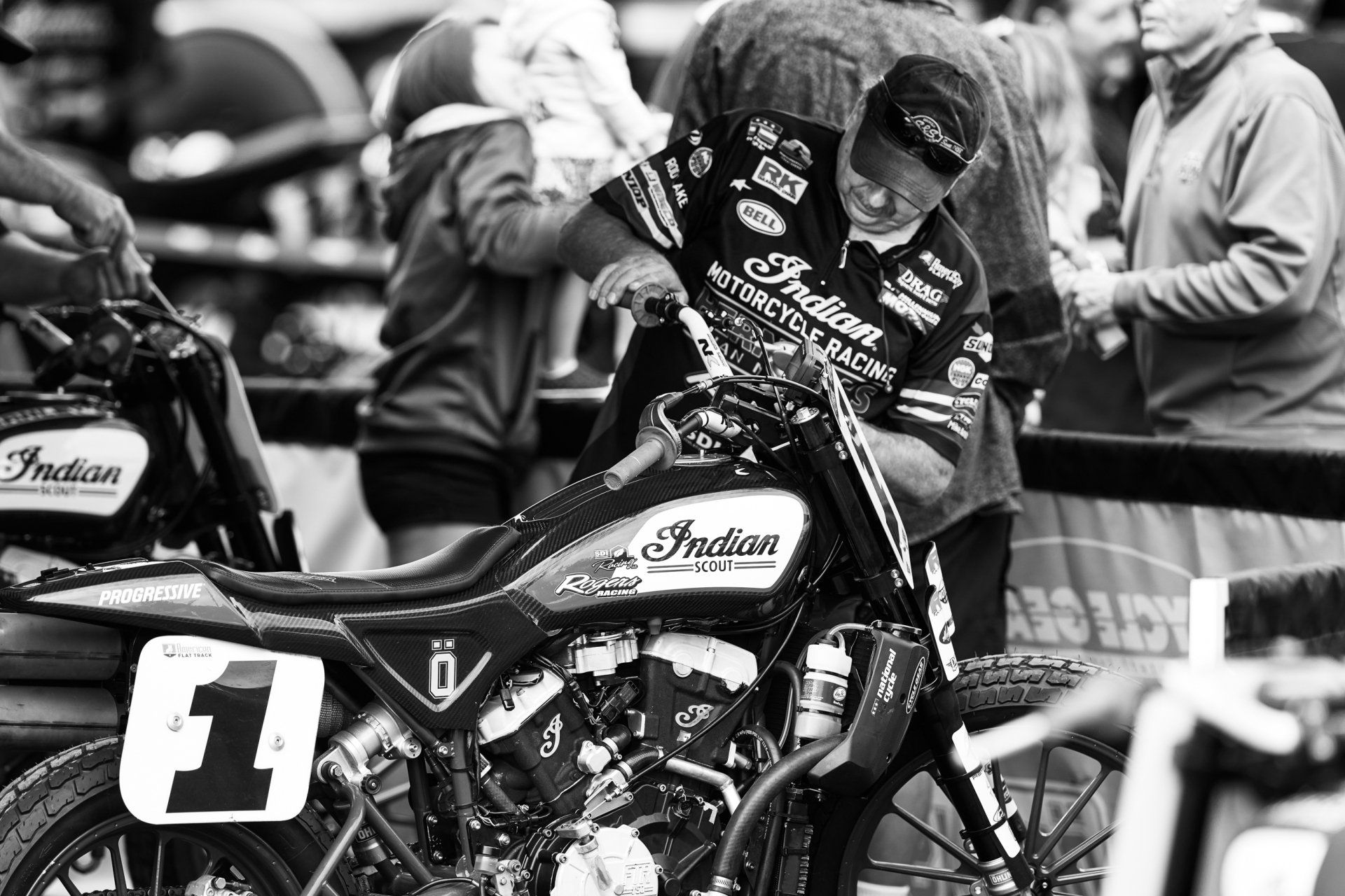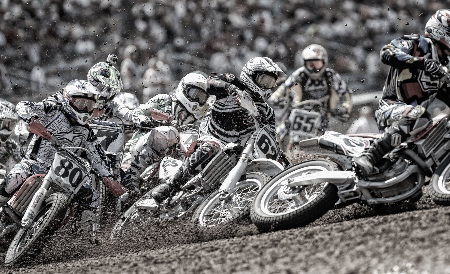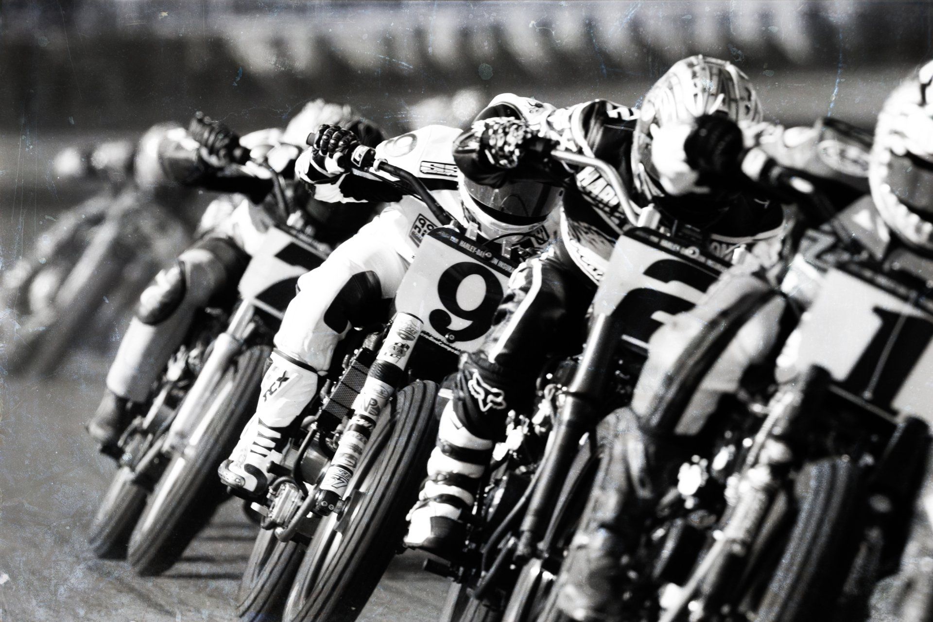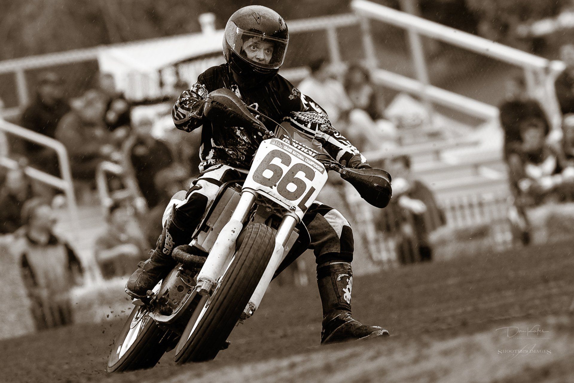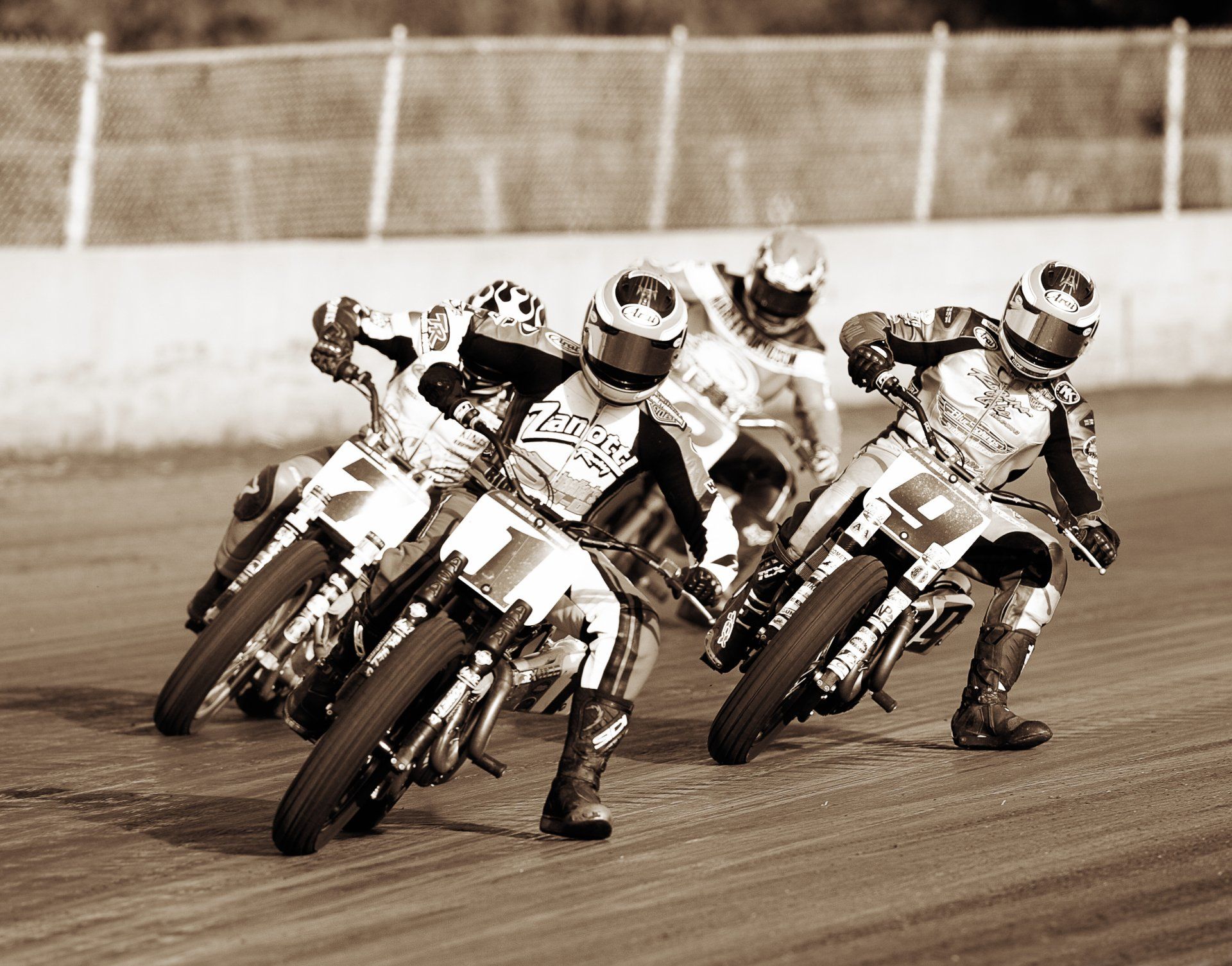 Most of my experience shooting races has been with flat track racing, but I occasionally shoot motocross, drag races, and snowmobiles. Much like rodeo photography, I'm kind of an "outsider" in that I don't follow a circuit and post images for sale to participants. I shot the Springfield Mile twice a year for over 7 years for Toyota. I originally shot the Mile for an article for Harley-Davidson's HOG Magazine. So, my focus has always been to document the event rather than get individual shots that I could sell. This allowed me to experiment a bit with different angles, shooting techniques, less popular track positions, and so on. Among a sea of conventional 70-200mm lenses, I mostly shot with 400mm and 600mm lenses which gave an entirely different look than the "accepted" lenses. I also shot with extreme wide angle lenses, which produced some of my favorite images. Shooting riders at 100+mph which such long lenses also proved to be an enjoyable challenge.