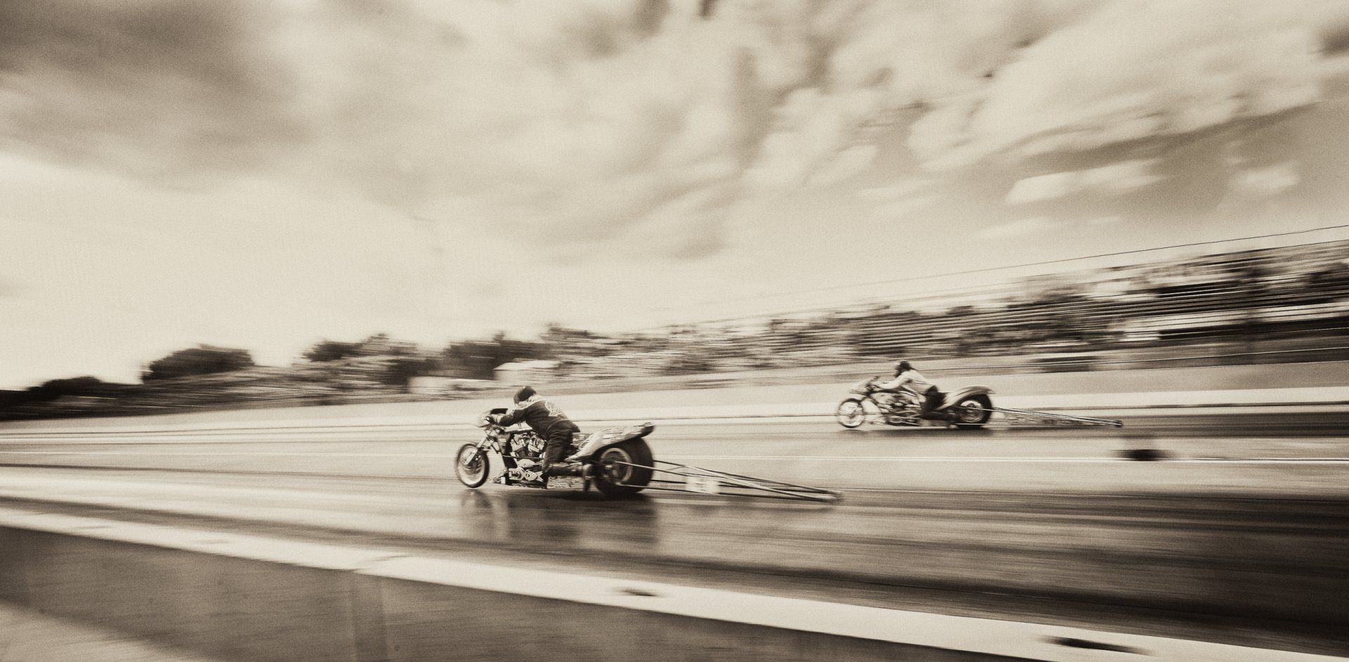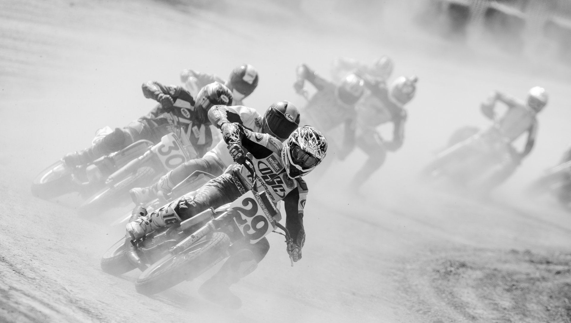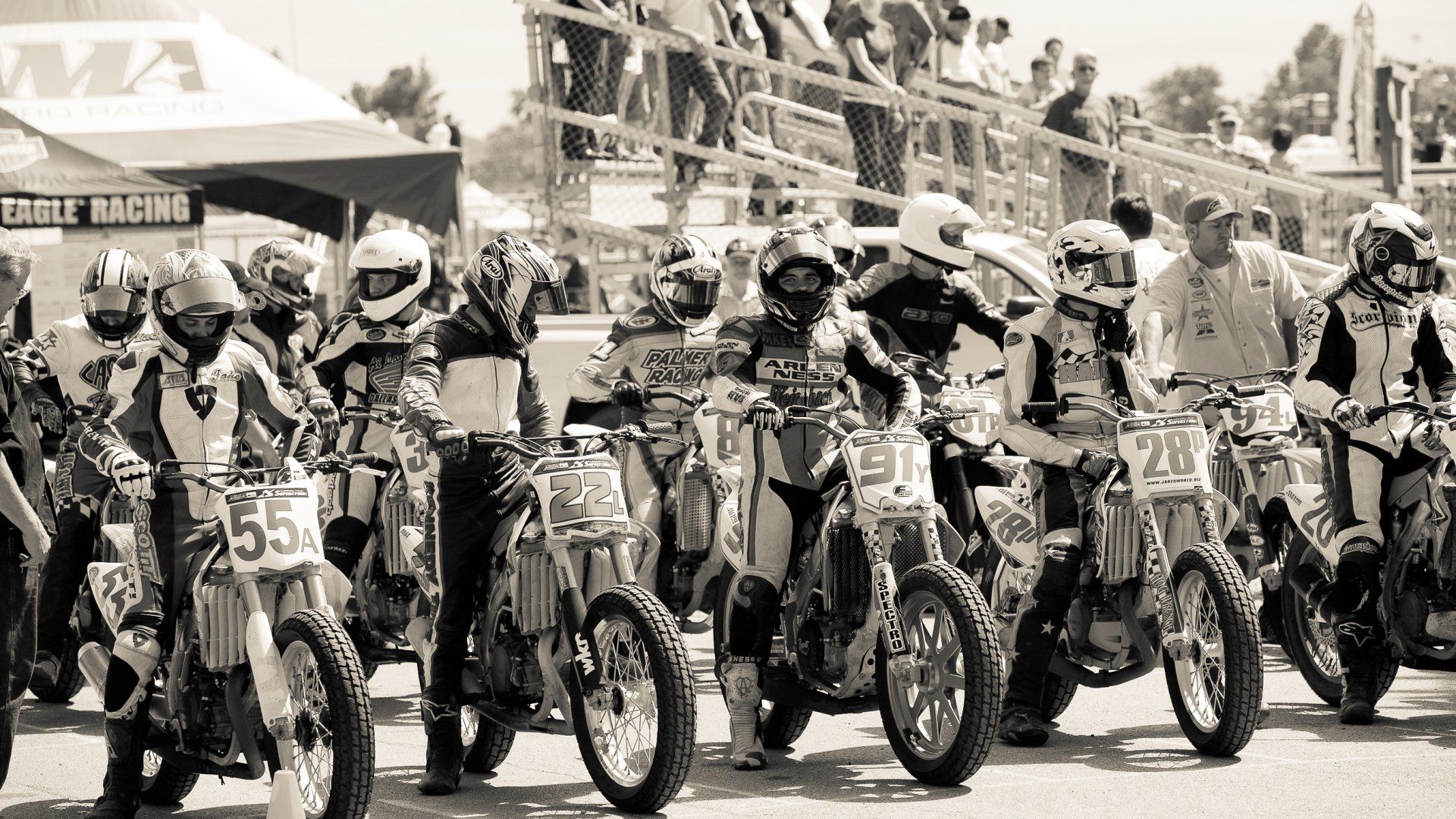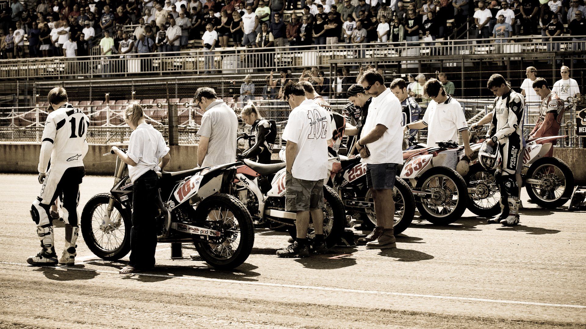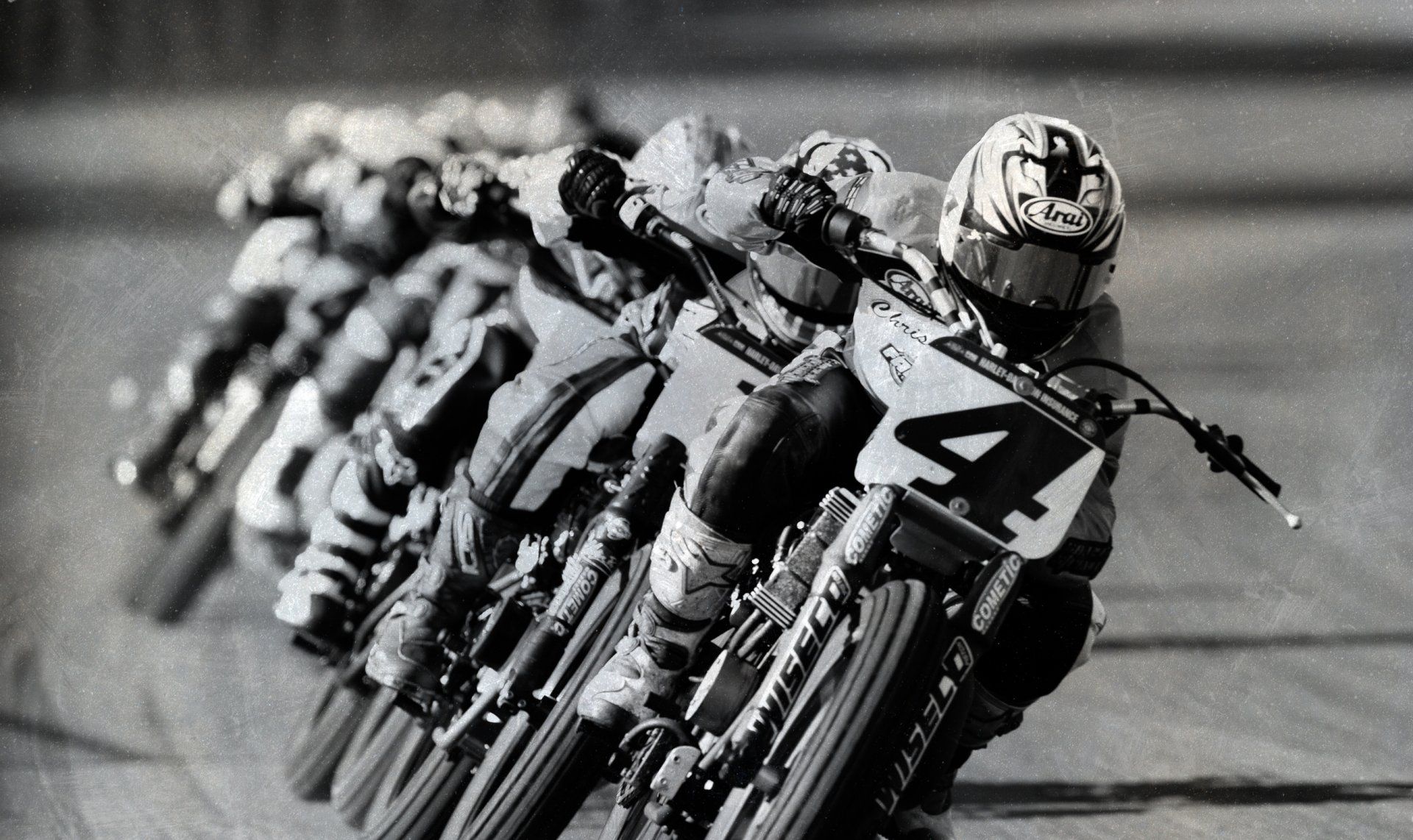Most of my experience shooting races has been with flat track racing, but I occasionally shoot motocross, drag races, and snowmobiles. Much like rodeo photography, I'm kind of an "outsider" in that I don't follow a circuit and post images for sale to participants. I shot the Springfield Mile twice a year for over 7 years for Toyota. I originally shot the Mile for an article for Harley-Davidson's HOG Magazine. So, my focus has always been to document the event rather than get individual shots that I could sell. This allowed me to experiment a bit with different angles, shooting techniques, less popular track positions, and so on. Among a sea of conventional 70-200mm lenses, I mostly shot with 400mm and 600mm lenses which gave an entirely different look than the "accepted" lenses. I also shot with extreme wide angle lenses, which produced some of my favorite images. Shooting riders at 100+mph which such long lenses also proved to be an enjoyable challenge.